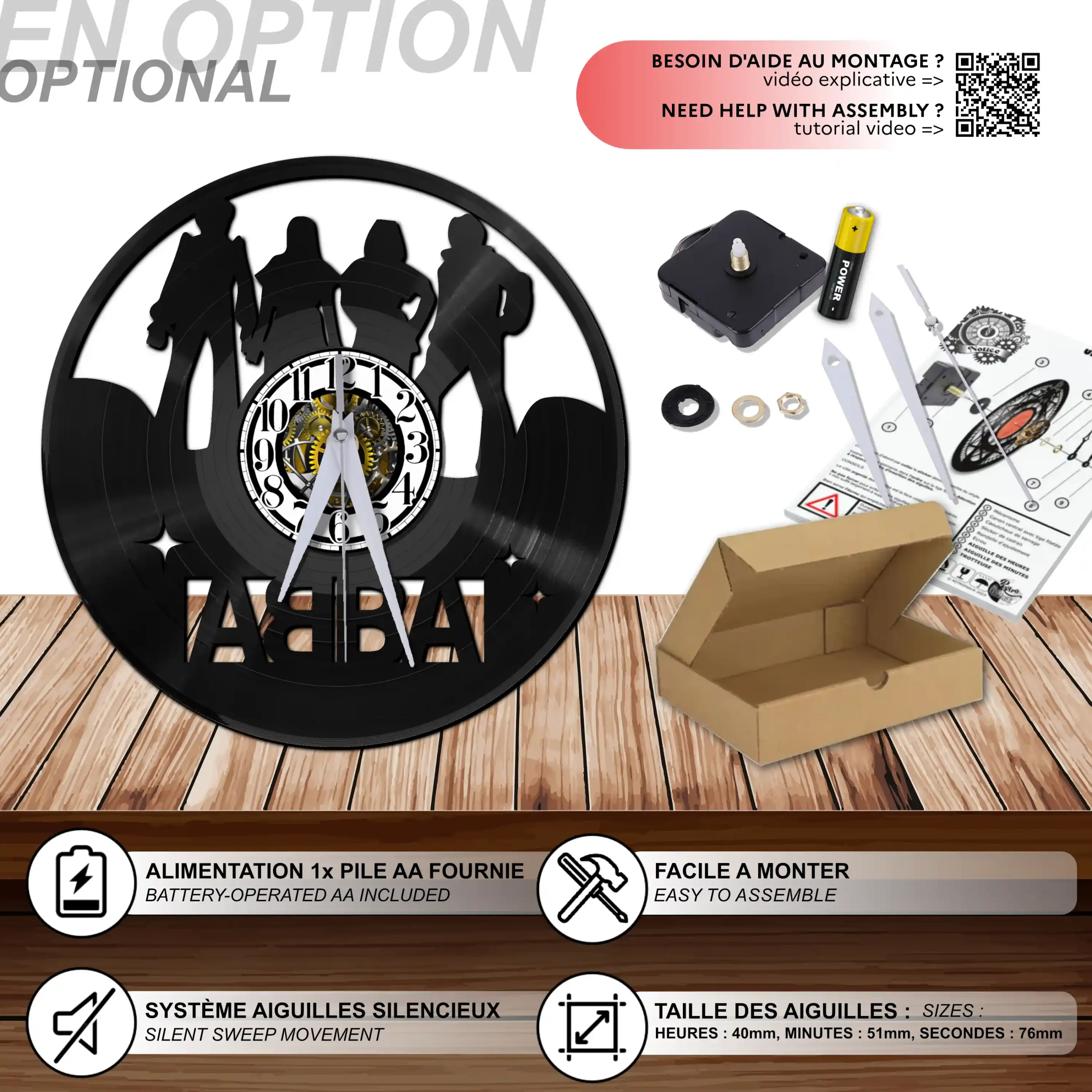 - 1 système d’accroche (compatible avec le vinyle seul et le mécanisme d’horloge)