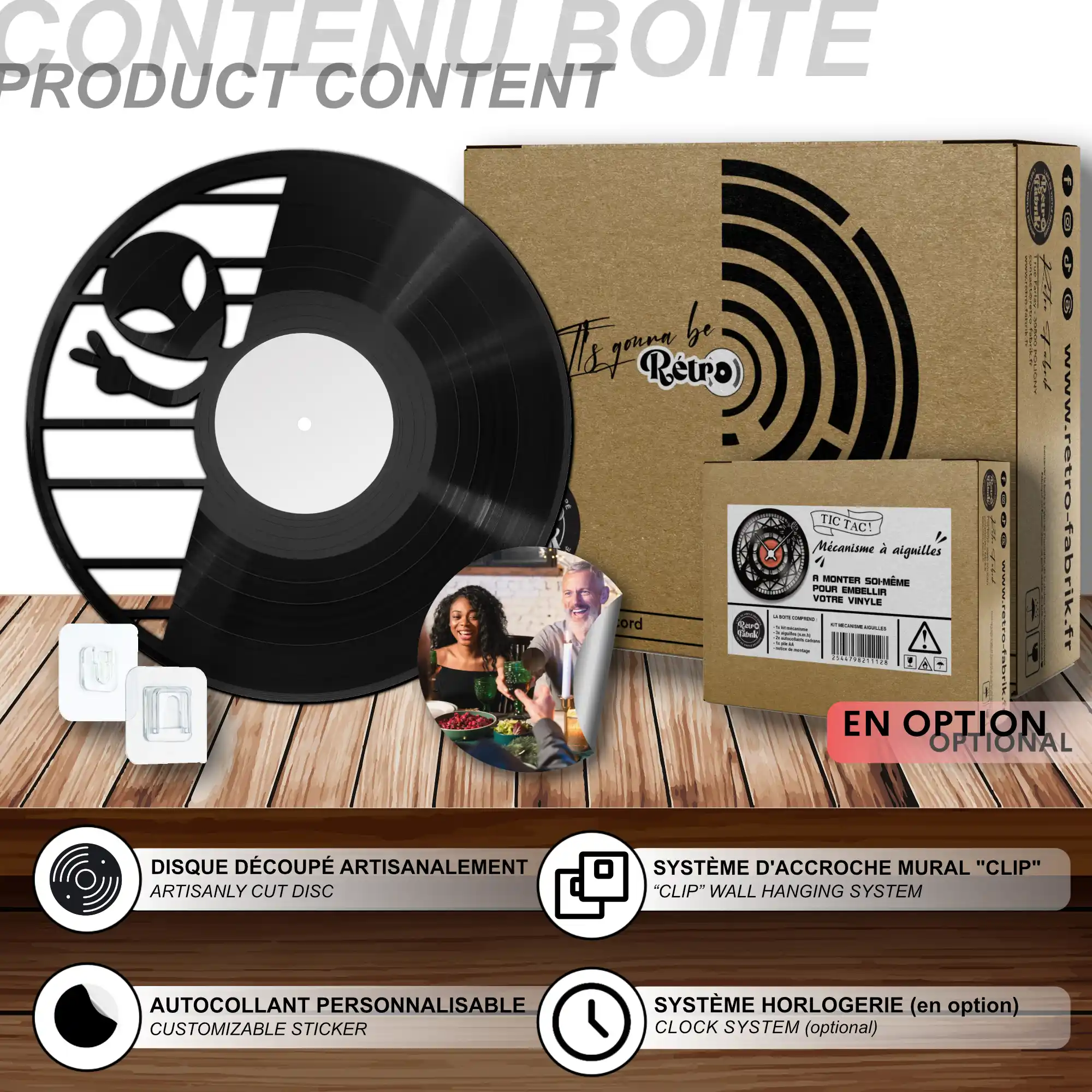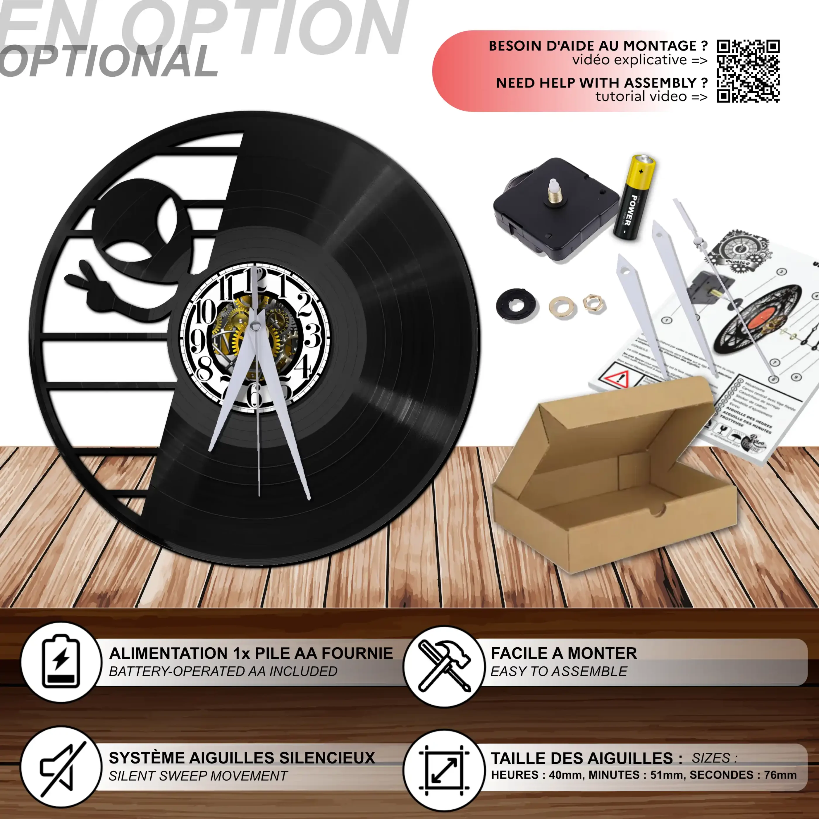 - 1 système d’accroche (compatible avec le vinyle seul et le mécanisme d’horloge)