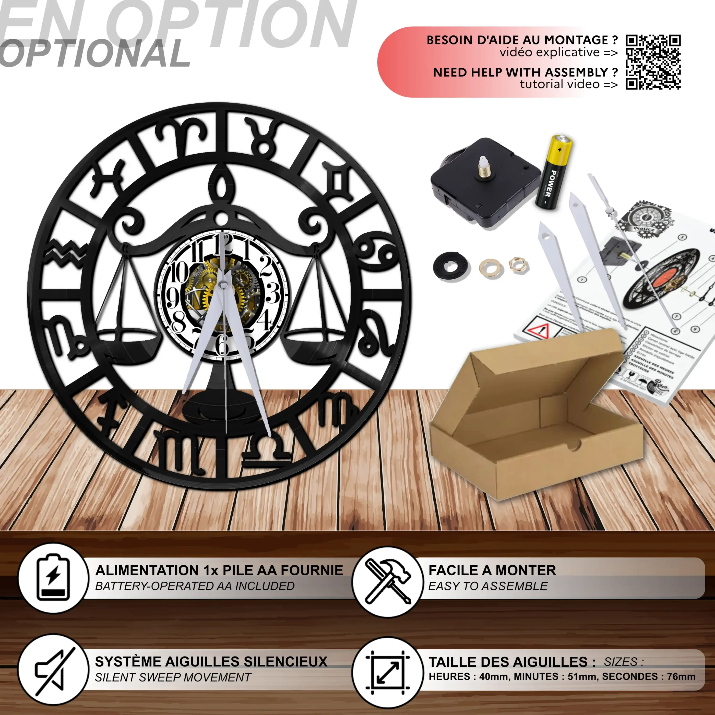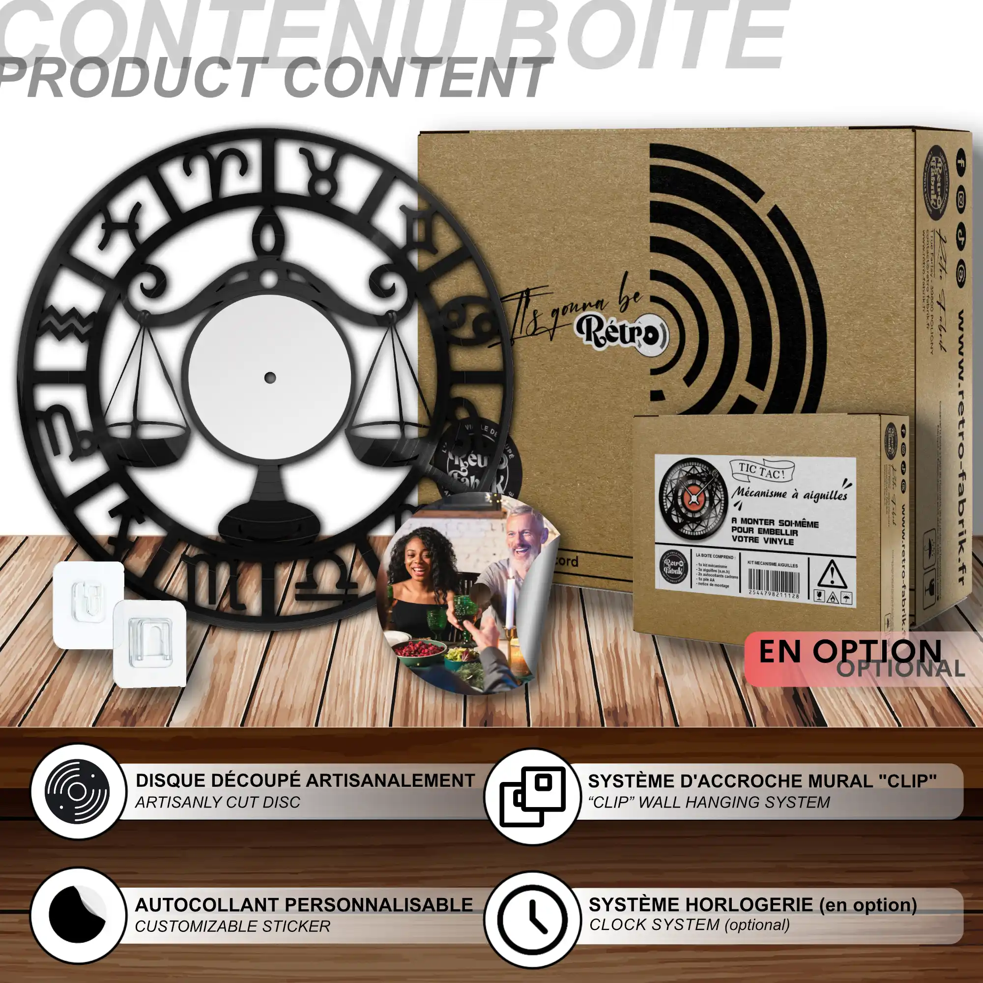 - 1 système d’accroche (compatible avec le vinyle seul et le mécanisme d’horloge)