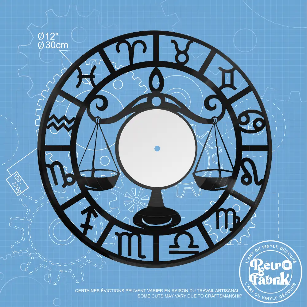 L'harmonie et l'esthétisme recherchés par la Balance se retrouveront dans ce disque découpé. Son équilibre parfait entre forme et fonction apportera une touche de grâce à votre vie. Un choix équilibré qui sublimera votre environnement mural !Caractéristiques :- véritable disque vinyle 33 tours découpé