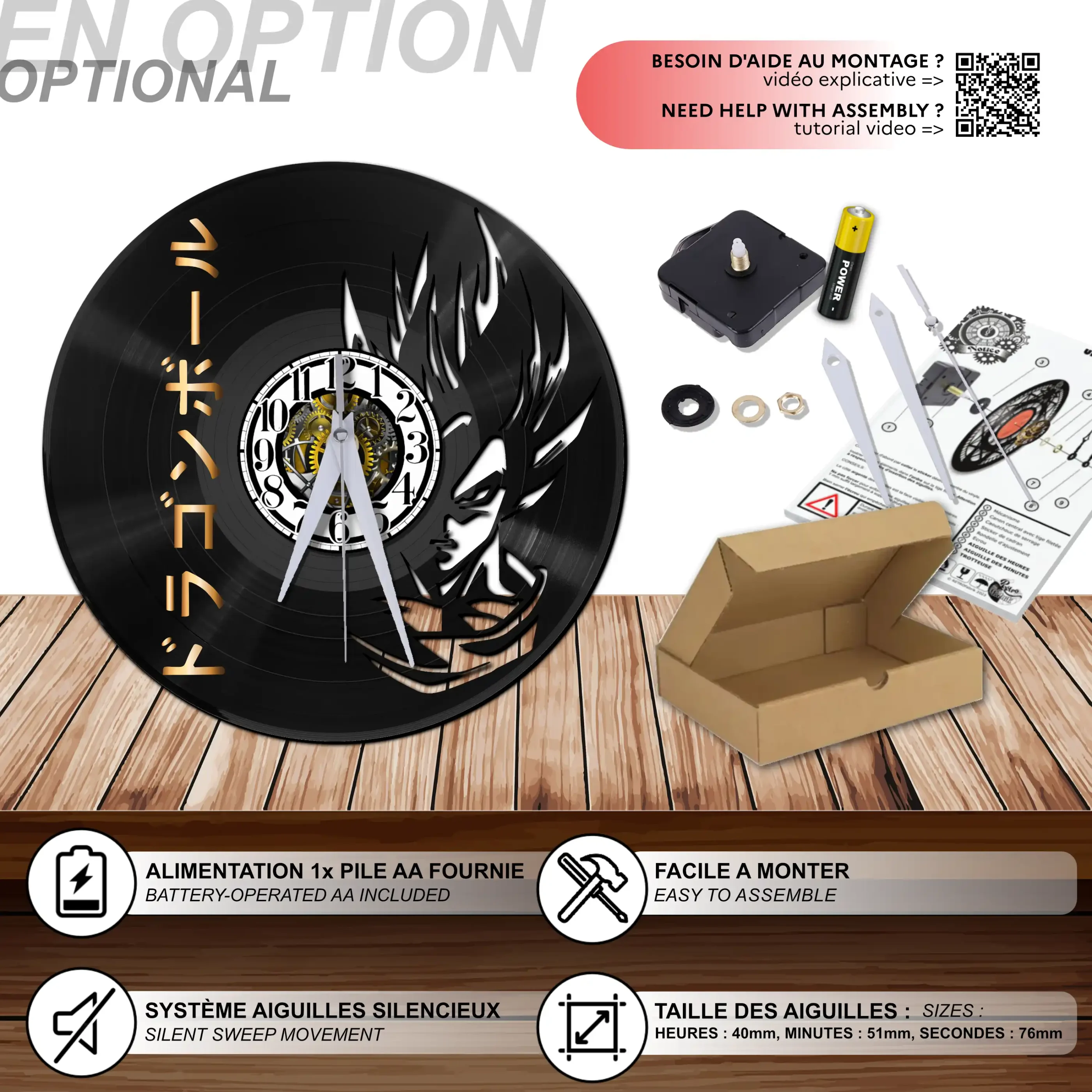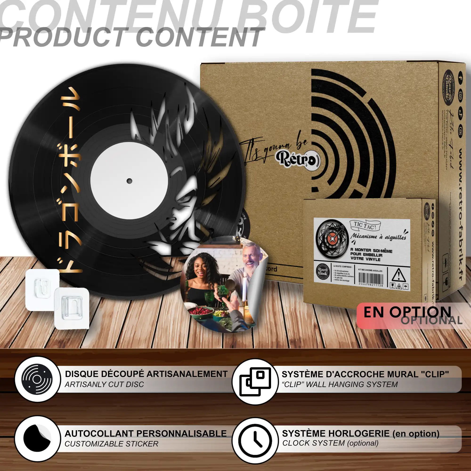 - 1 système d’accroche (compatible avec le vinyle seul et le mécanisme d’horloge)