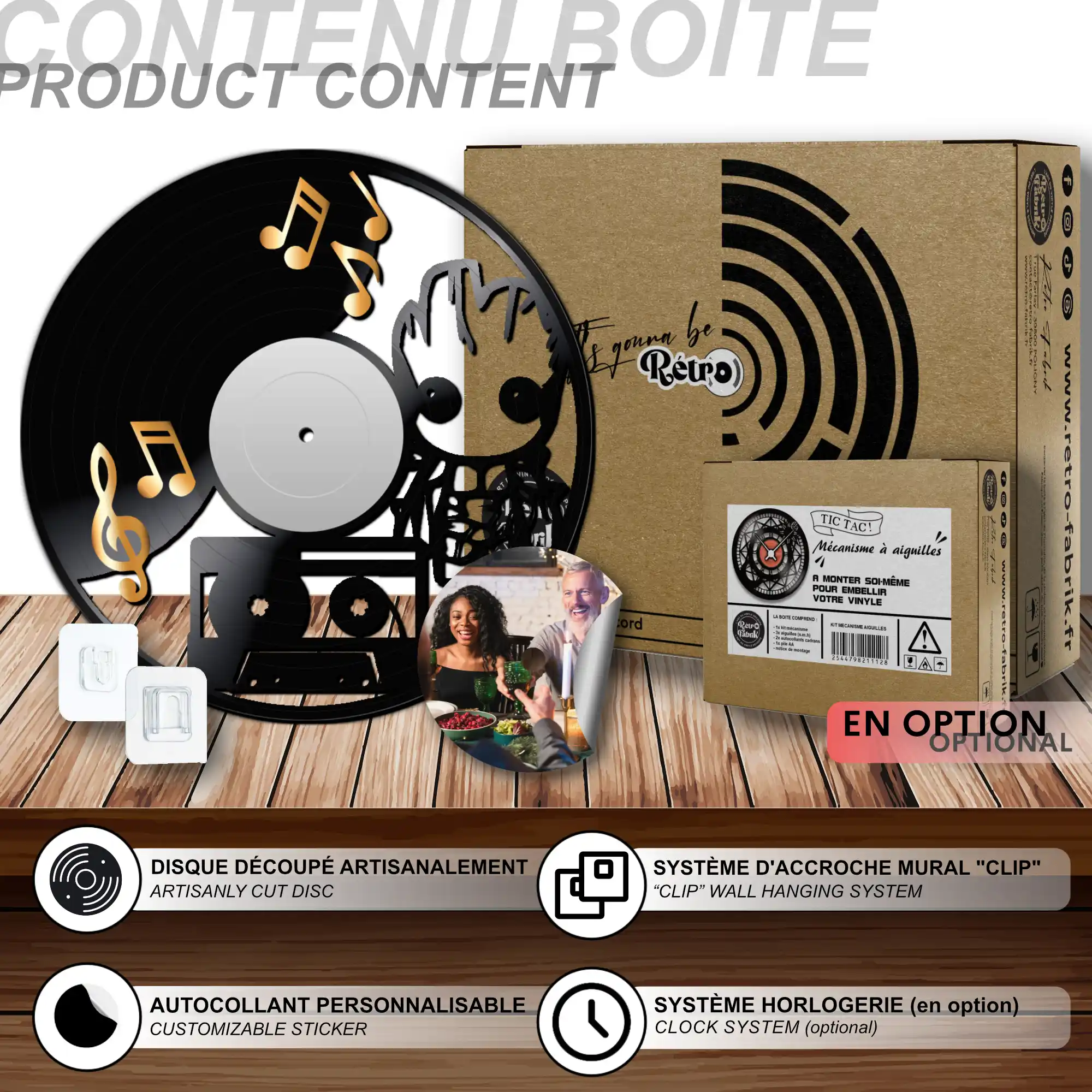 - 1 système d’accroche (compatible avec le vinyle seul et le mécanisme d’horloge)