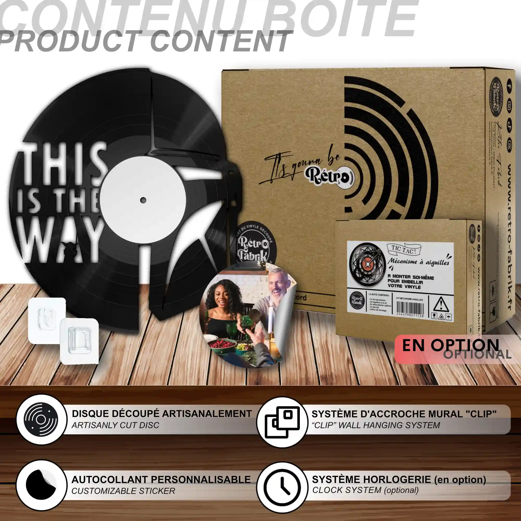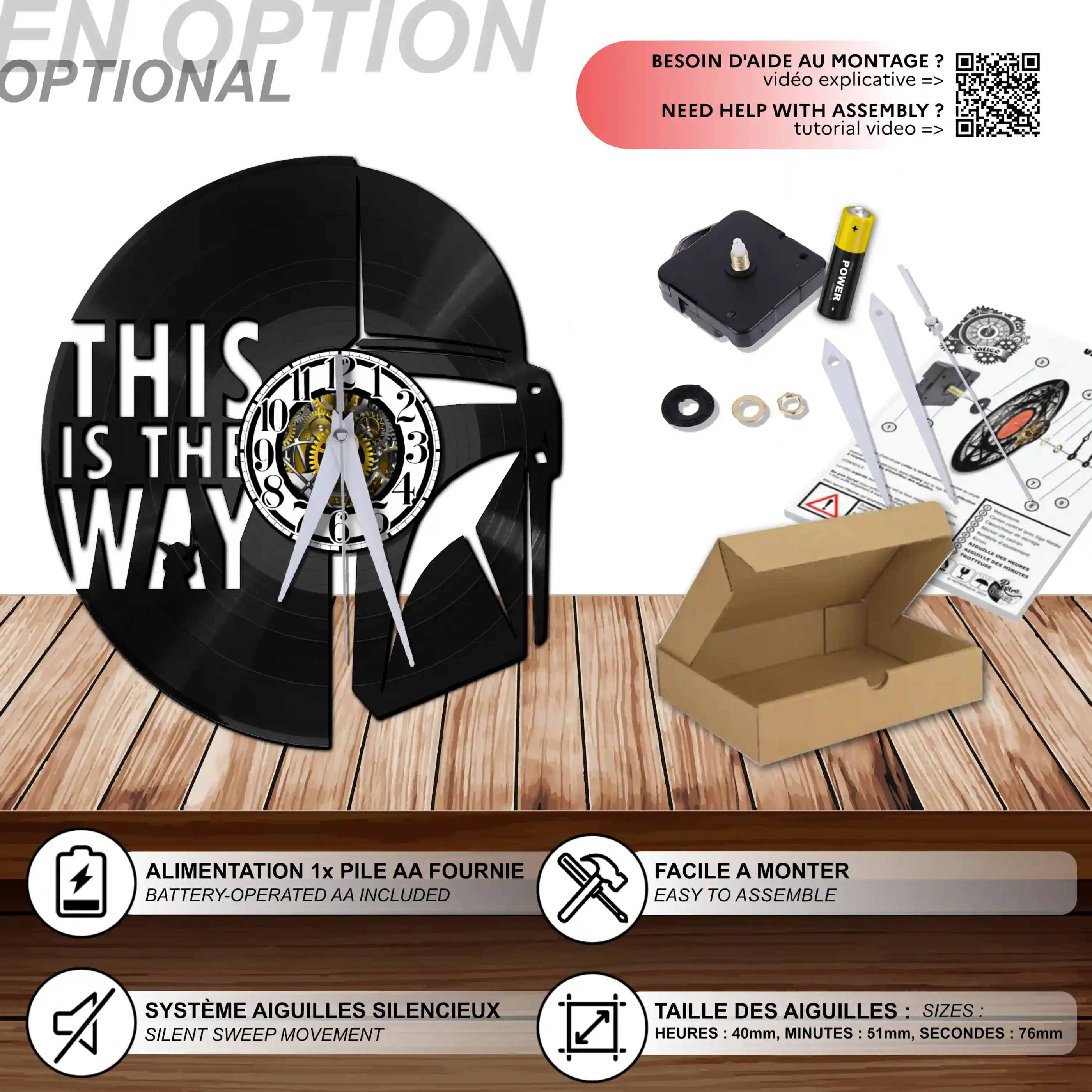 - 1 système d’accroche (compatible avec le vinyle seul et le mécanisme d’horloge)