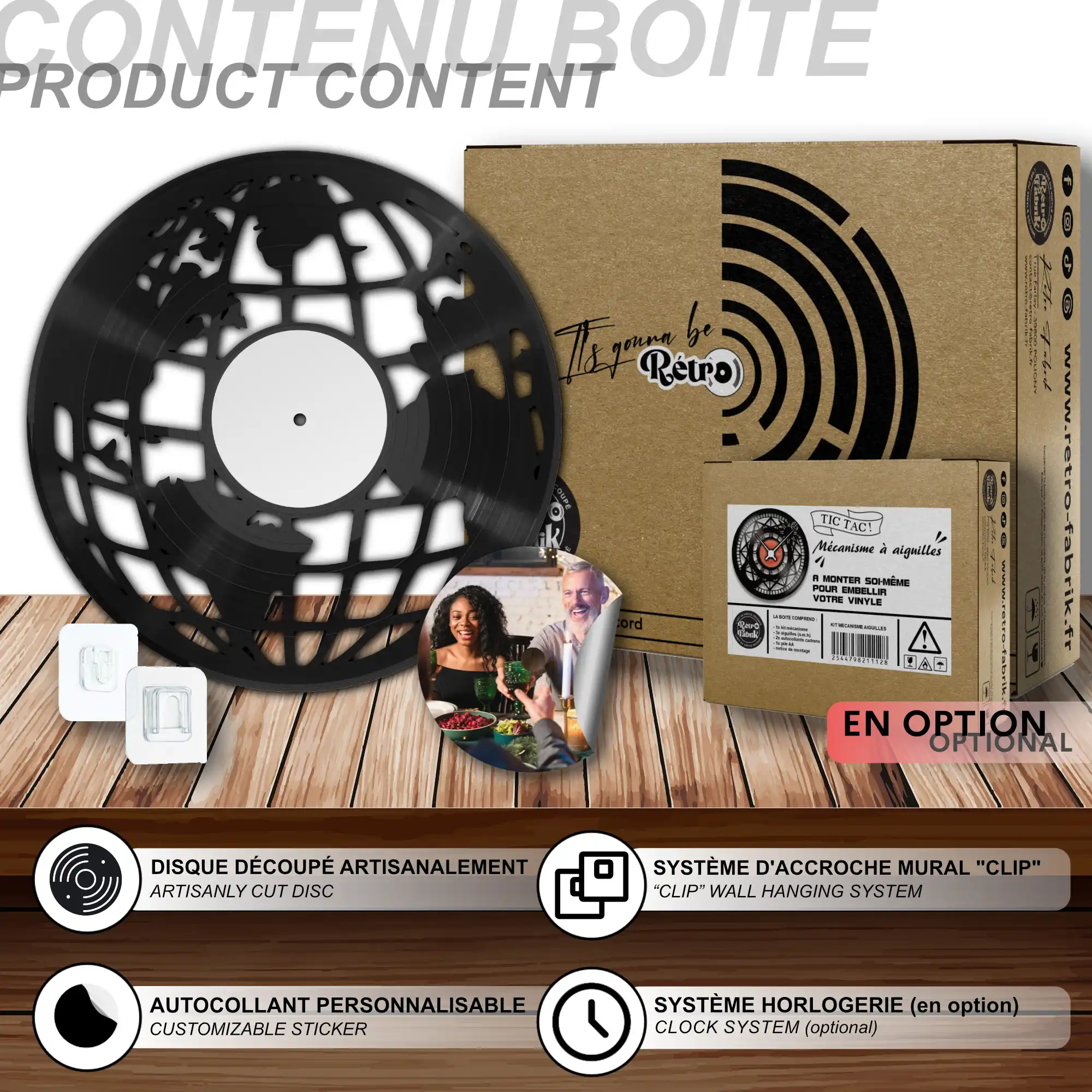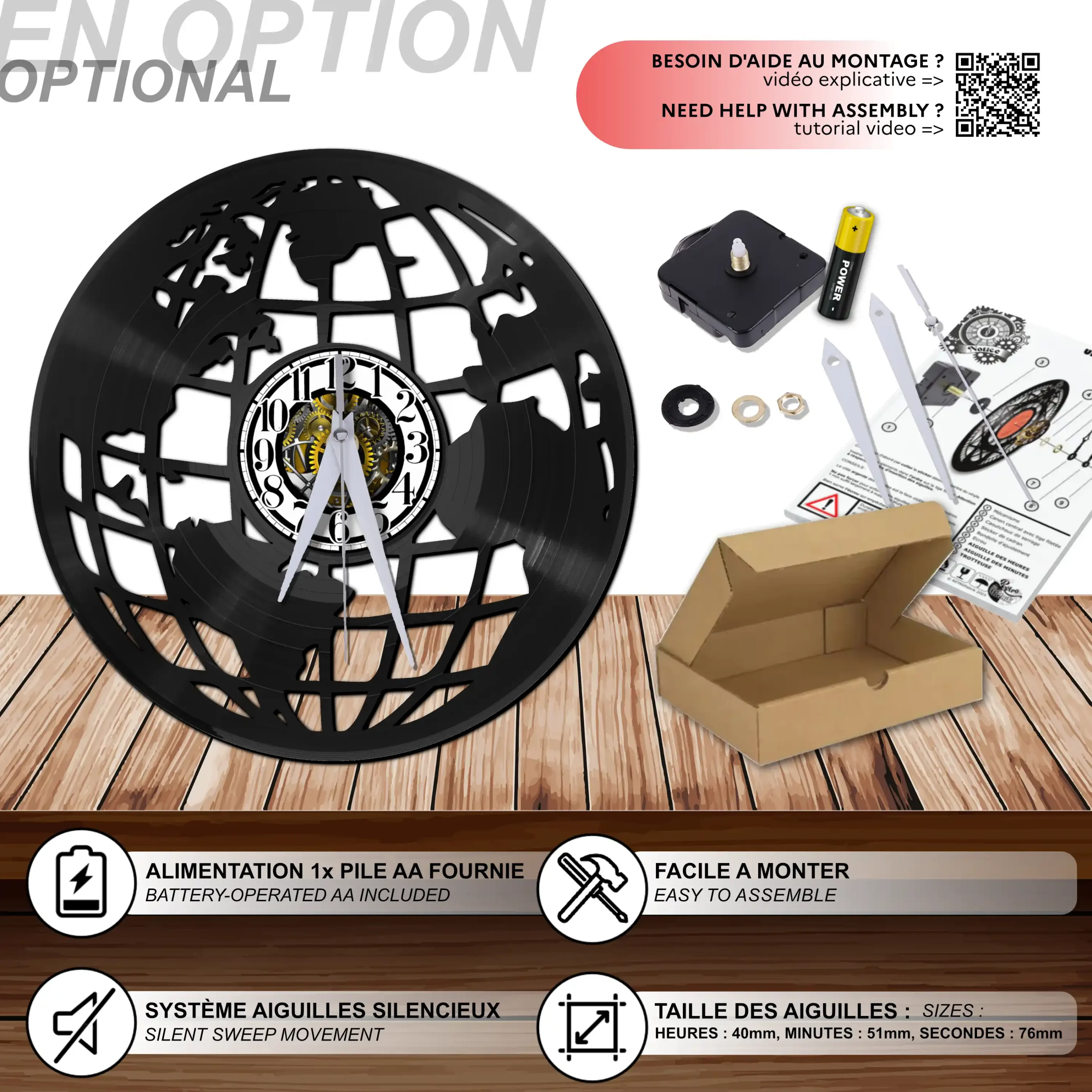 - 1 système d’accroche (compatible avec le vinyle seul et le mécanisme d’horloge)