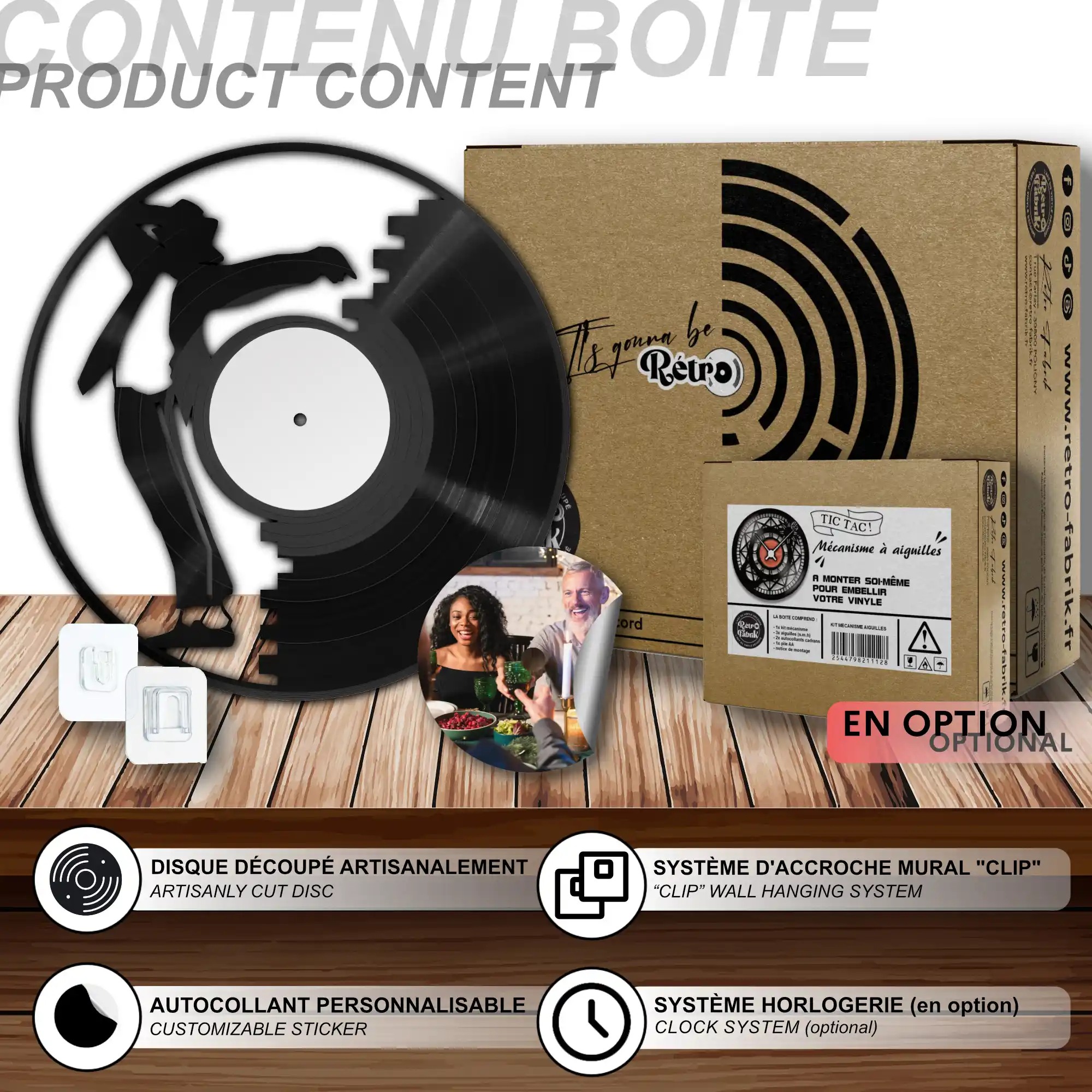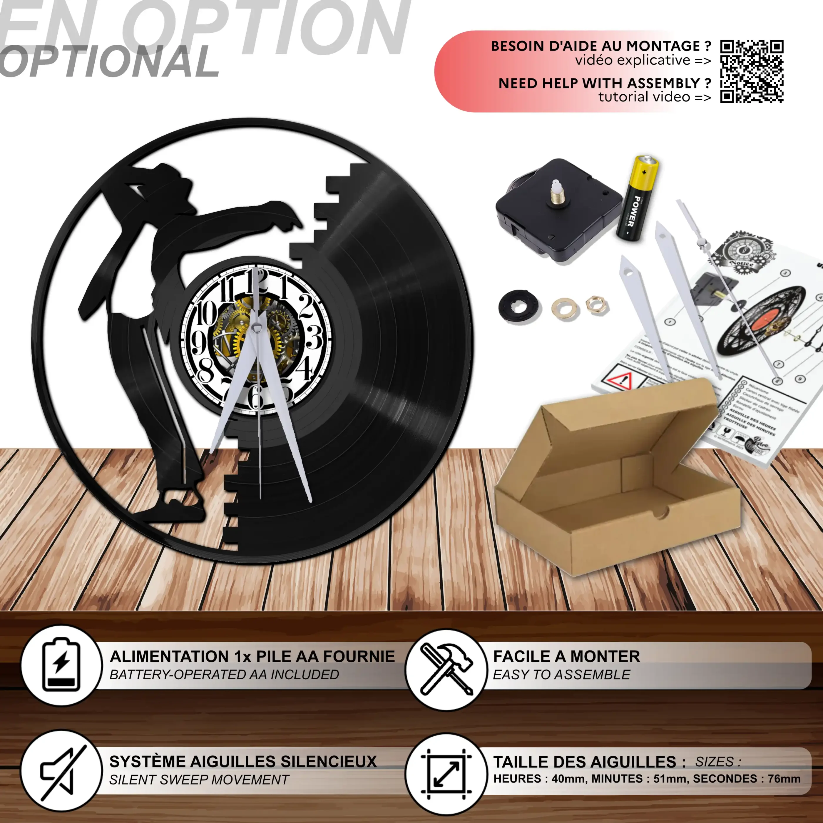 - 1 système d’accroche (compatible avec le vinyle seul et le mécanisme d’horloge)