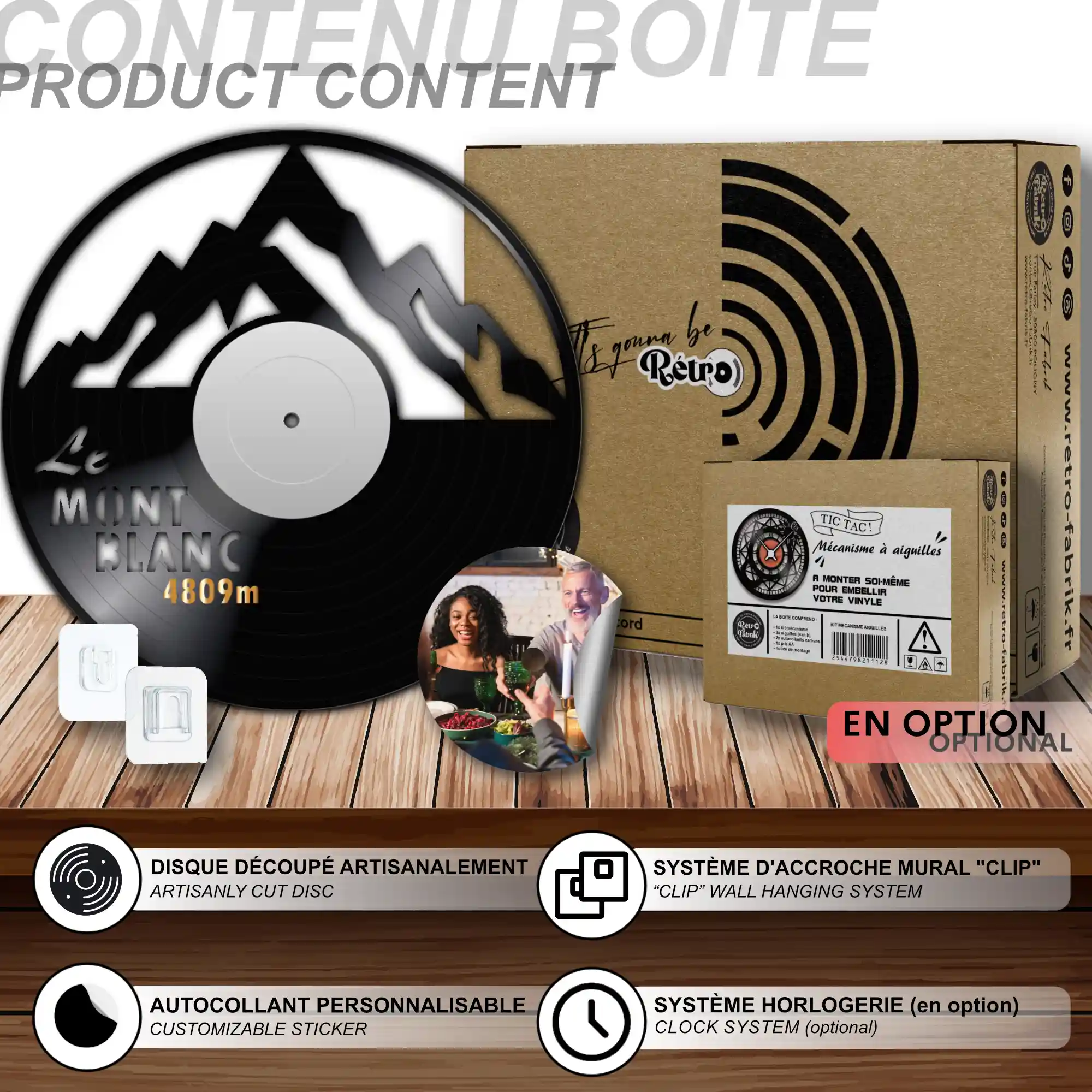 - 1 système d’accroche (compatible avec le vinyle seul et le mécanisme d’horloge)