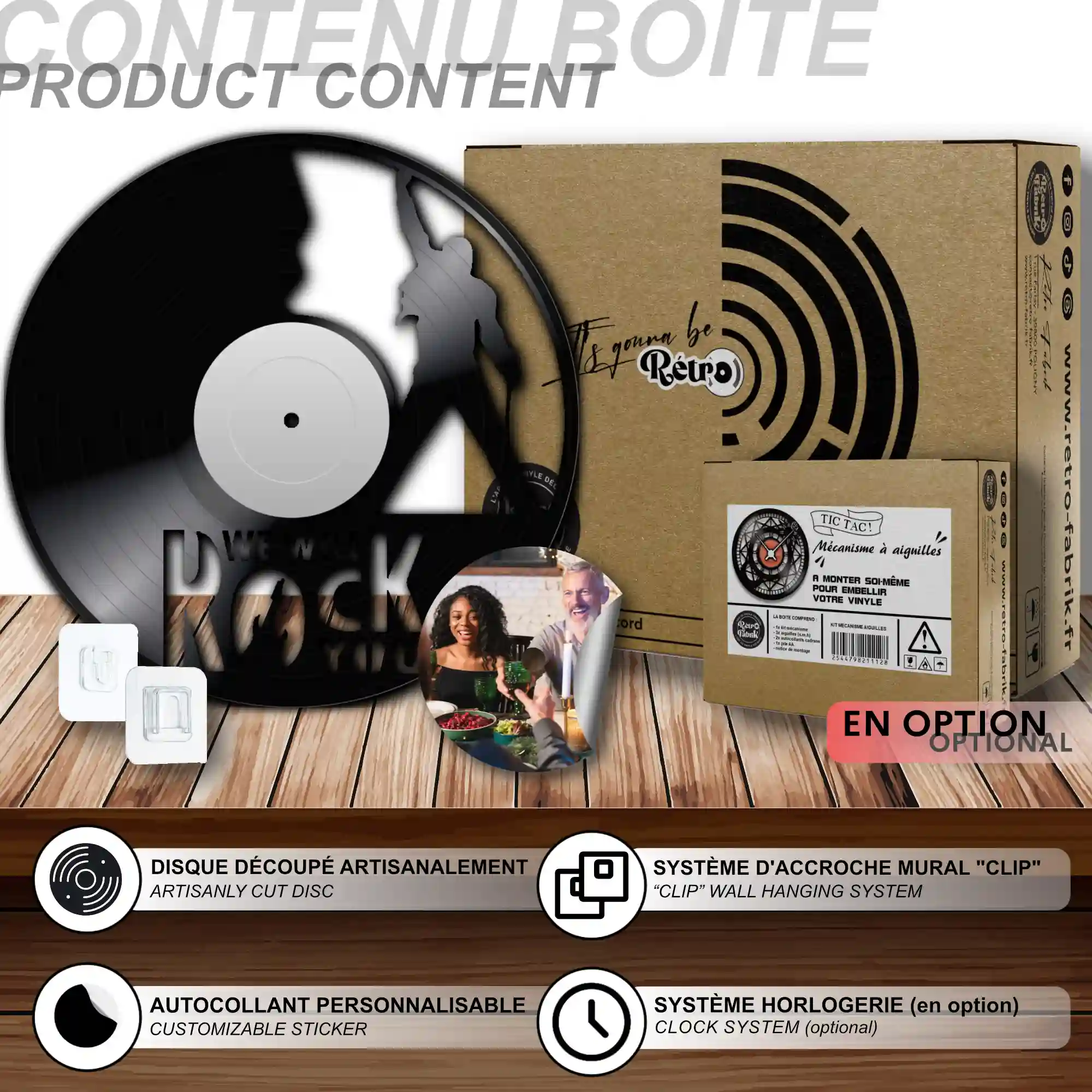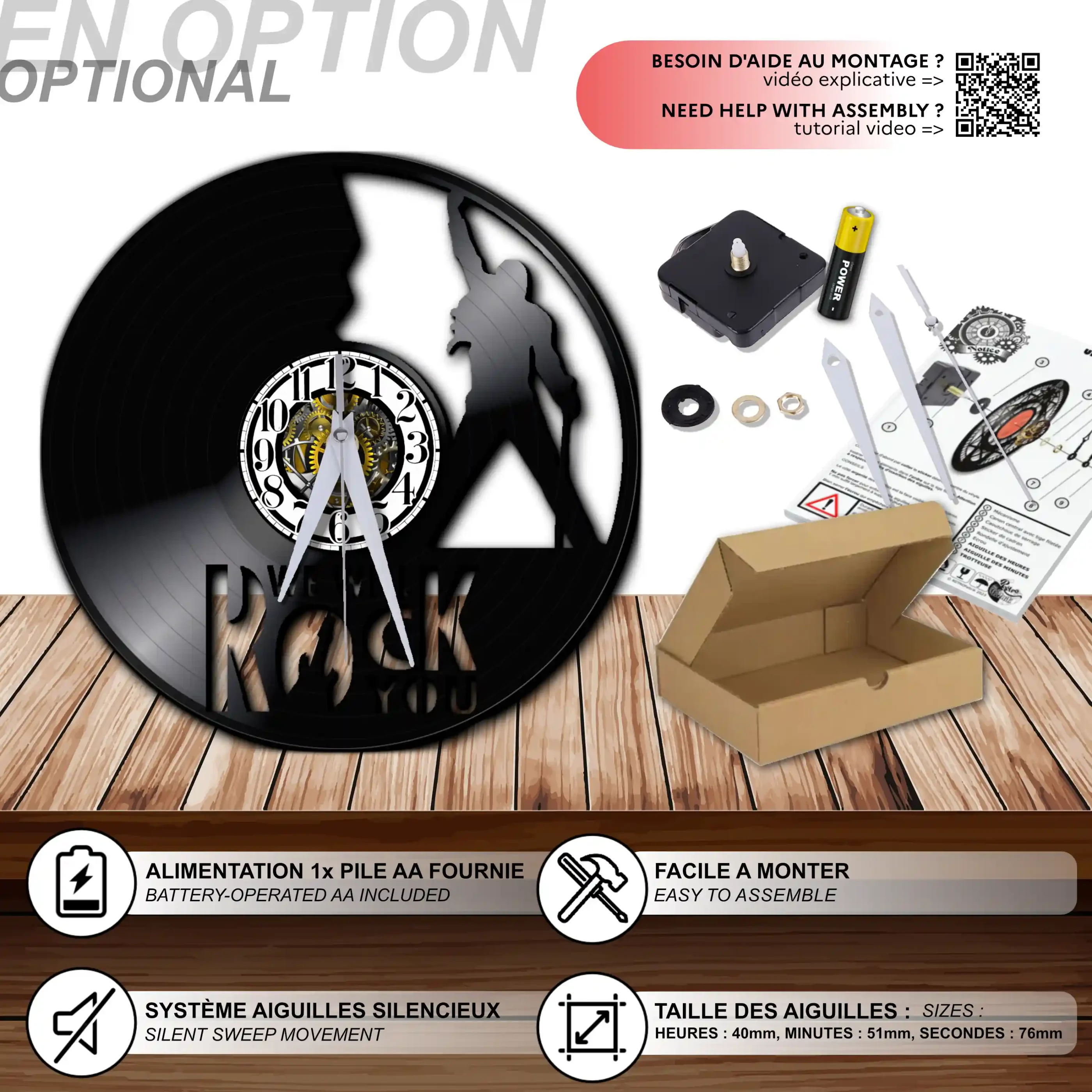 - 1 système d’accroche (compatible avec le vinyle seul et le mécanisme d’horloge)