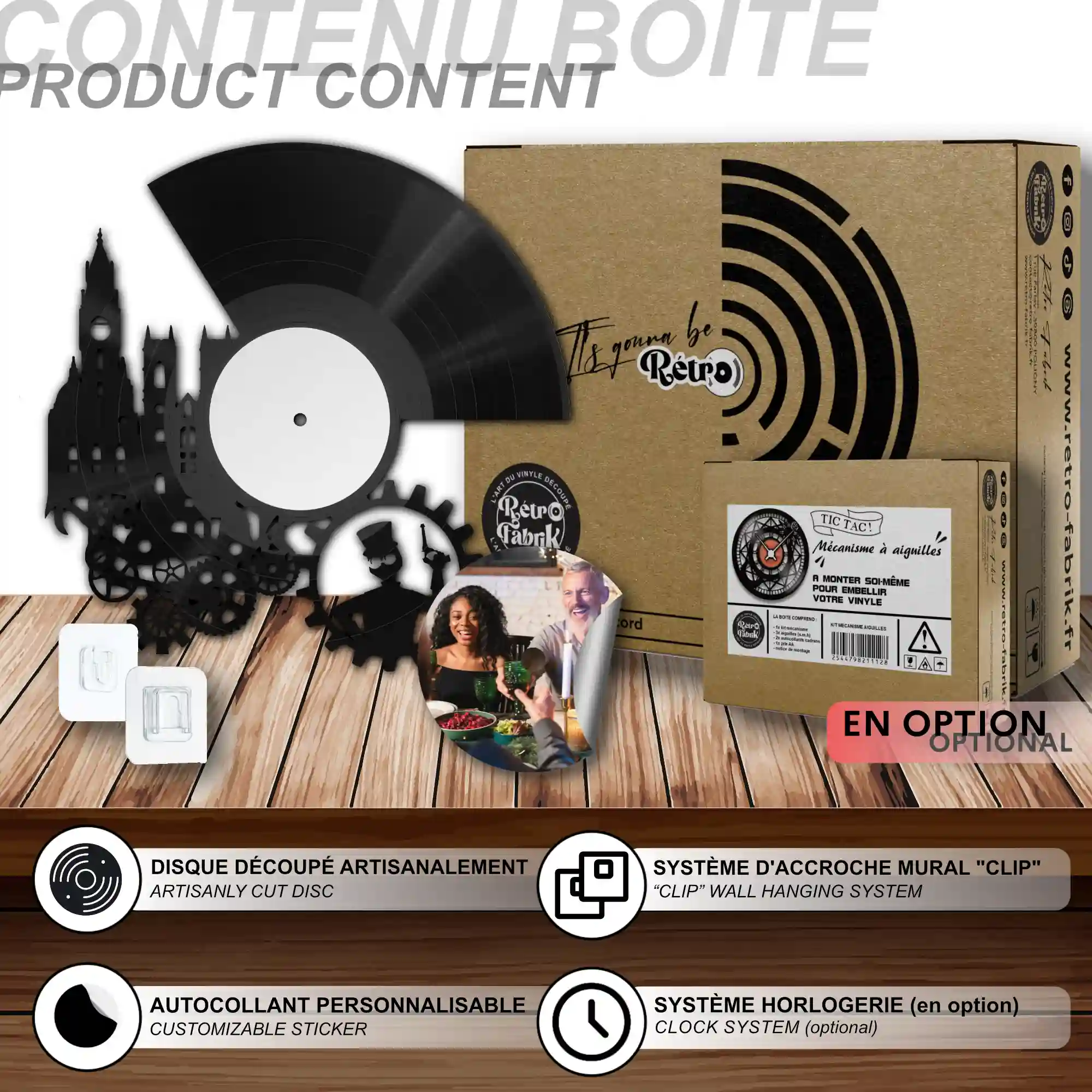 - 1 système d’accroche (compatible avec le vinyle seul et le mécanisme d’horloge)