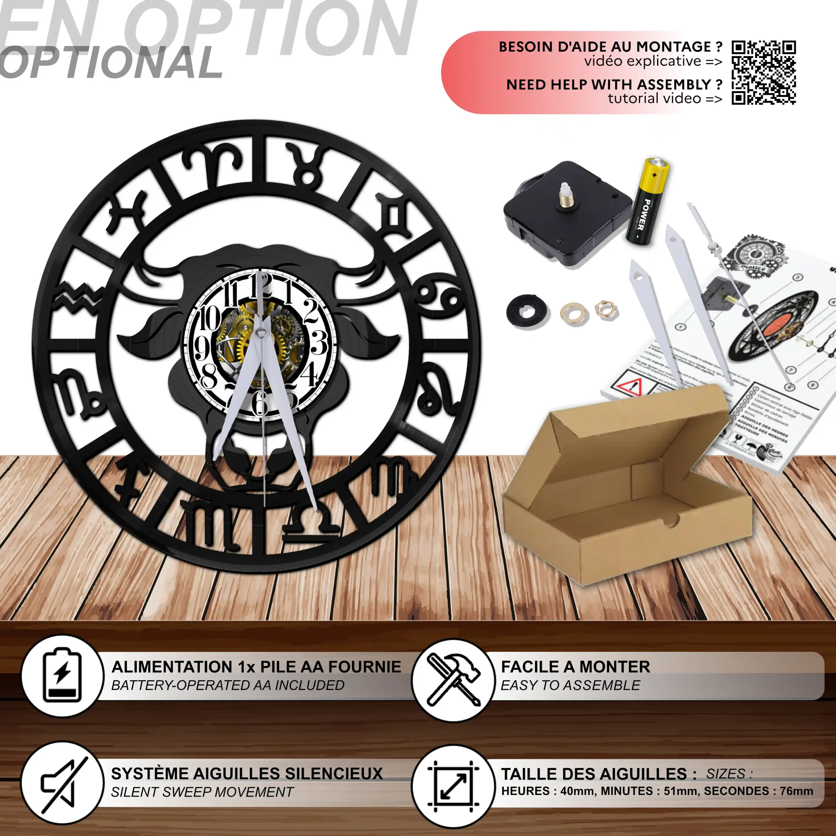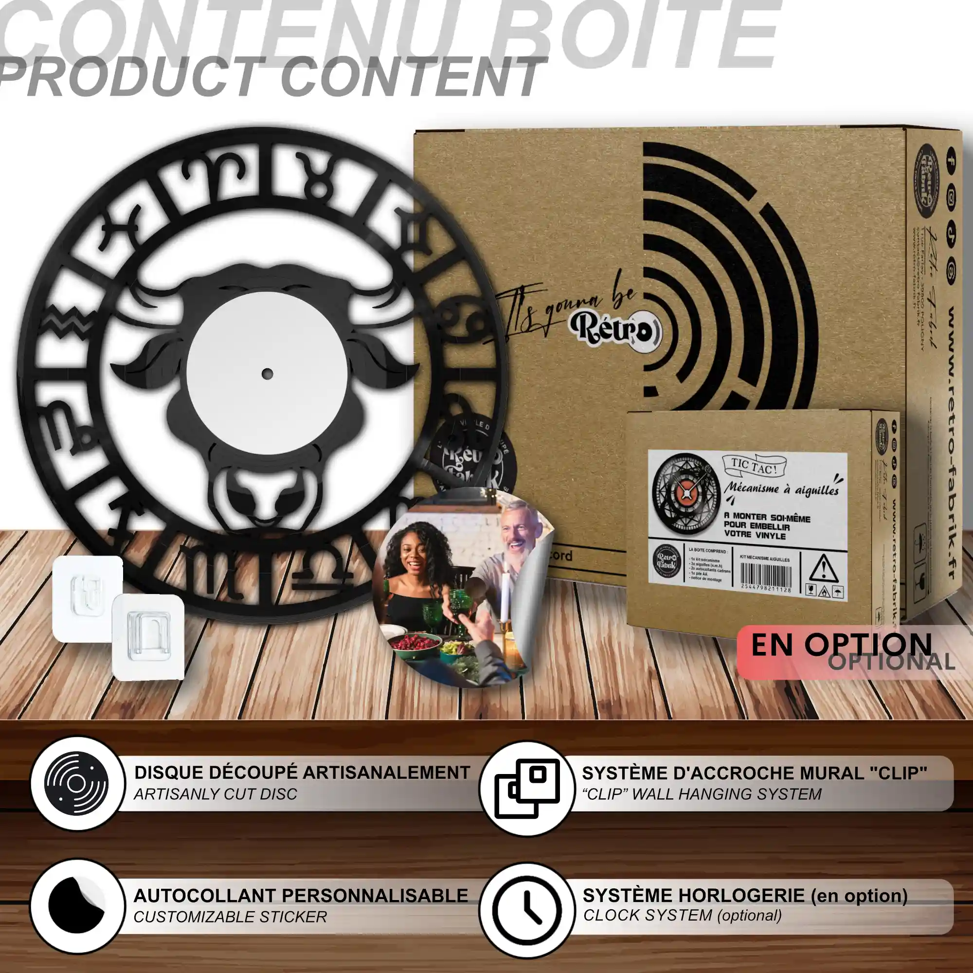 - 1 système d’accroche (compatible avec le vinyle seul et le mécanisme d’horloge)