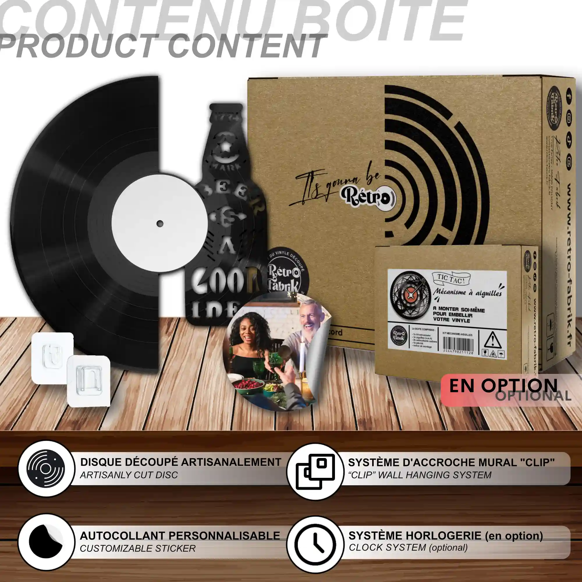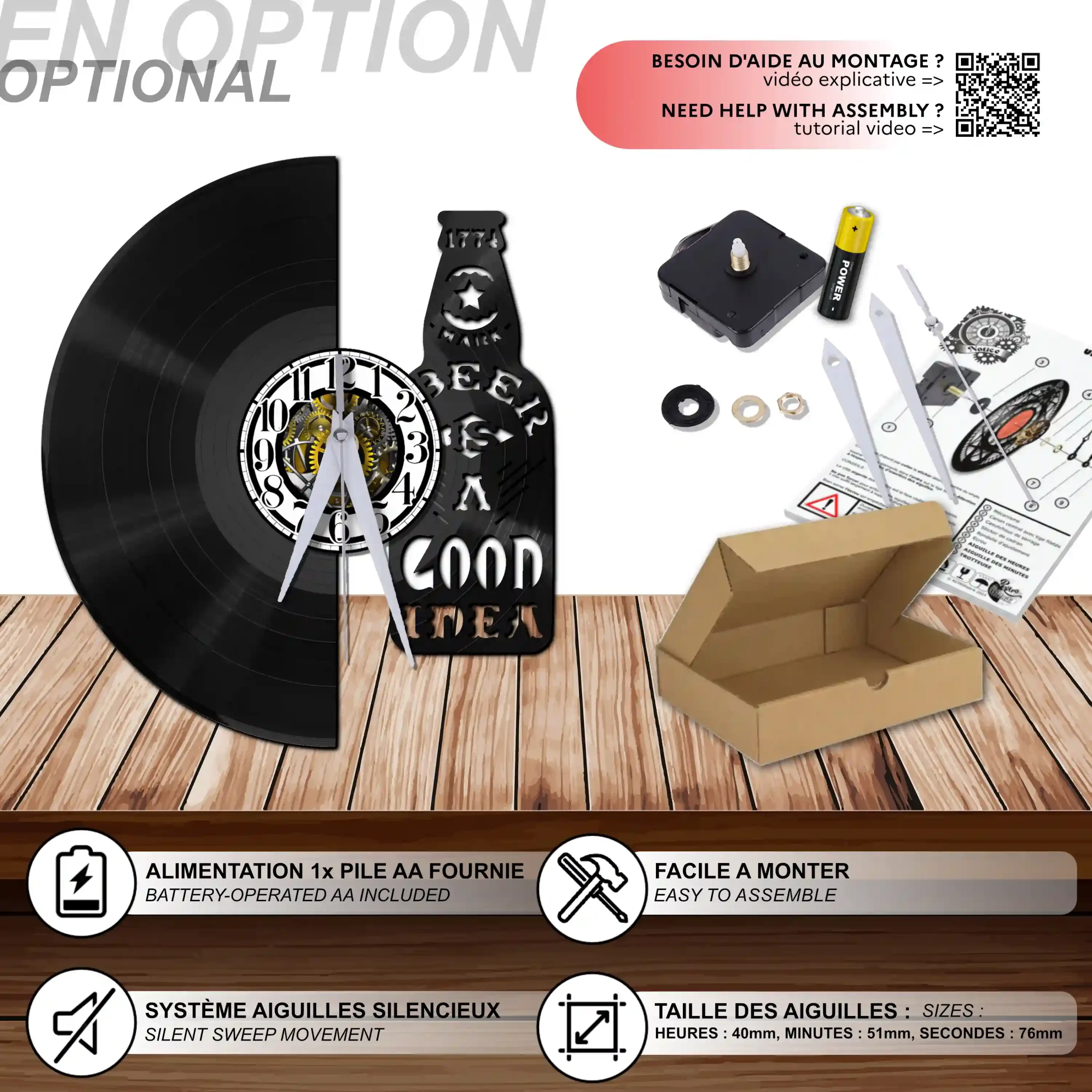 - 1 système d’accroche (compatible avec le vinyle seul et le mécanisme d’horloge)